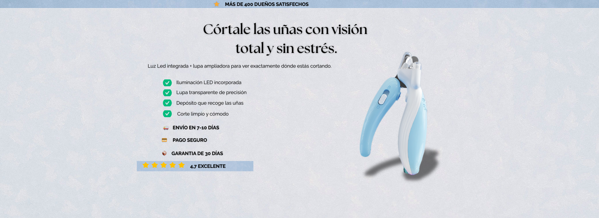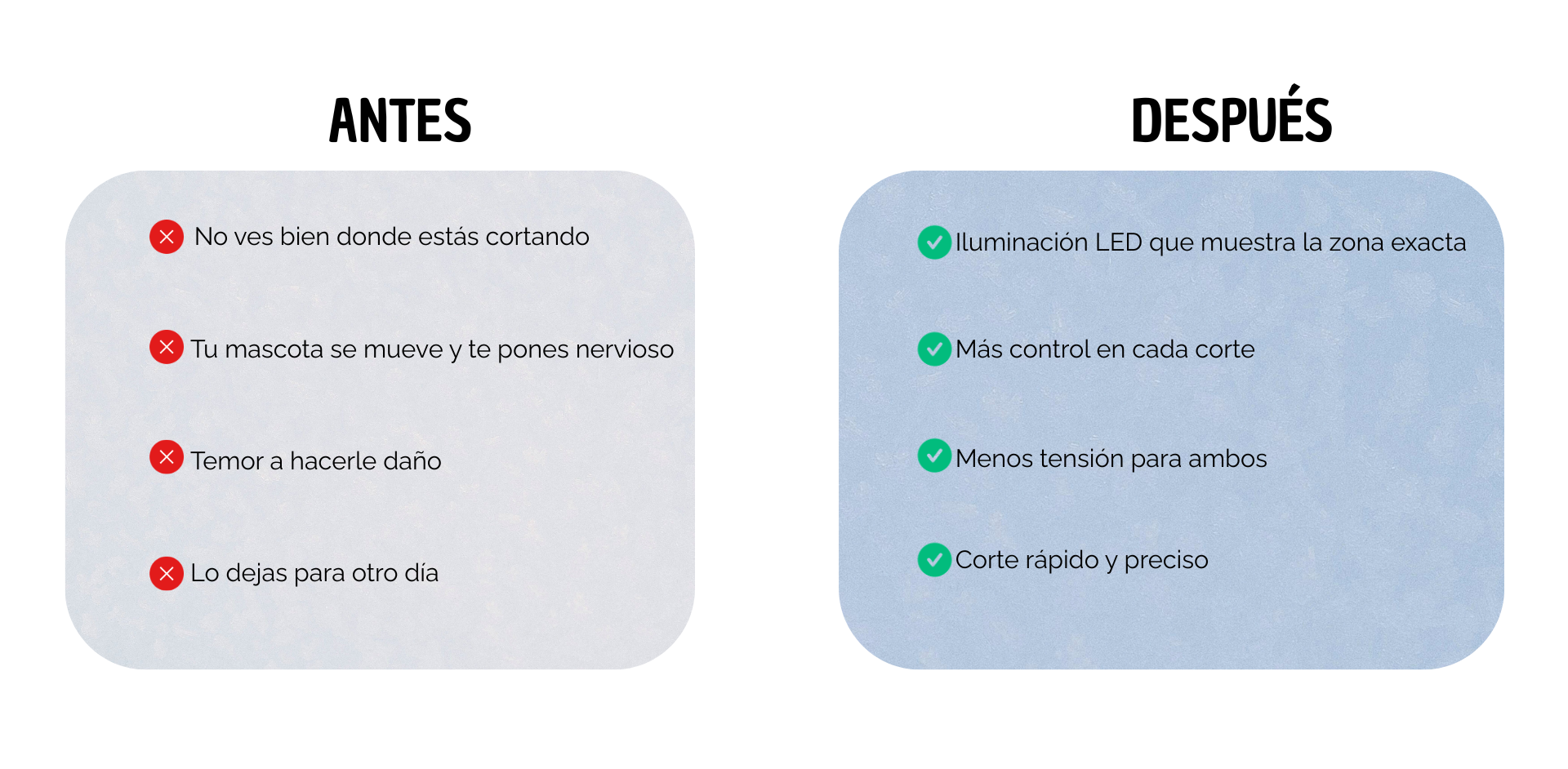 No. La luz es suave y está diseñada únicamente para iluminar la zona de corte sin incomodar a tu mascota.