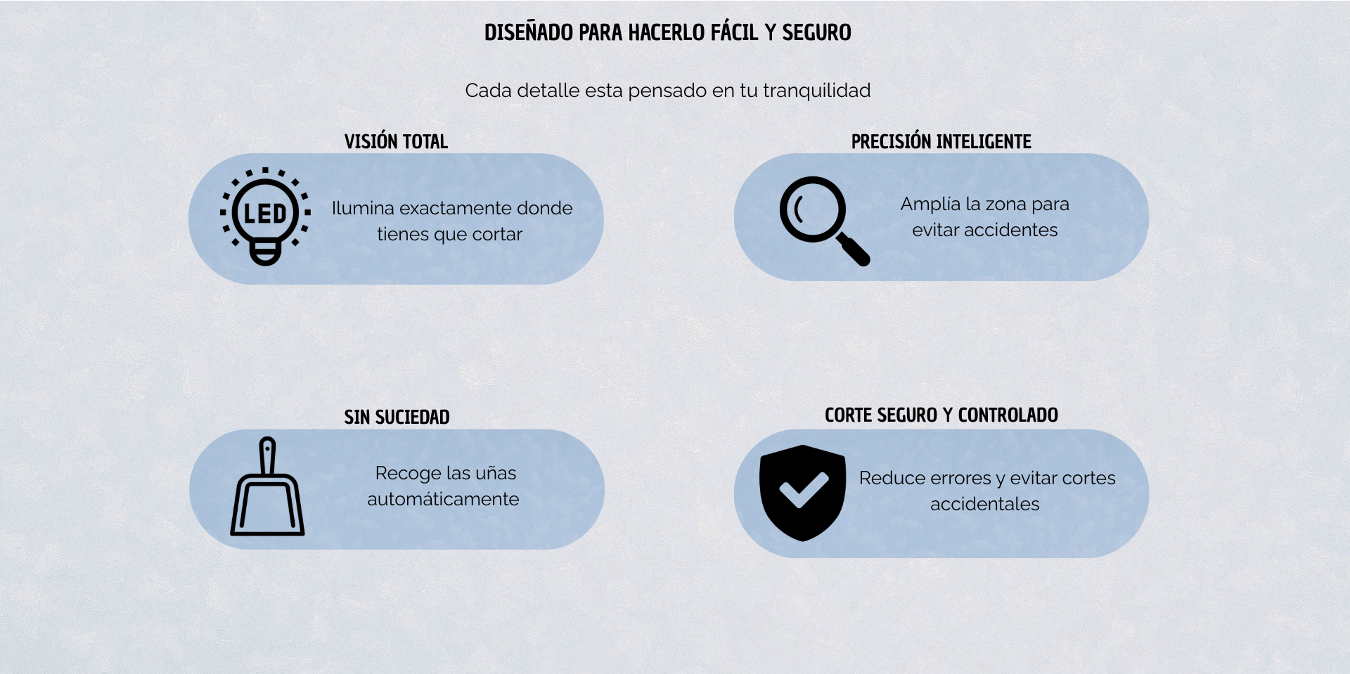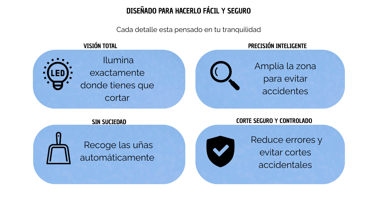 Si. Gracias a su iluminación LED integrada, puedes ver con mayor claridad las zonas que estás cortando, incluso uñas mas oscuras, reduciendo el riesgo de cortar de más.
