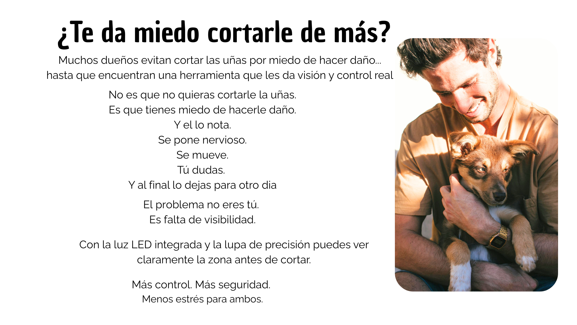 Si. El diseño ergonómico y el sistema de visión mejorada te permiten tener mayor control y precisión, lo que te ayuda a corta de forma más segura incluso si tu mascota se mueve ligeramente.